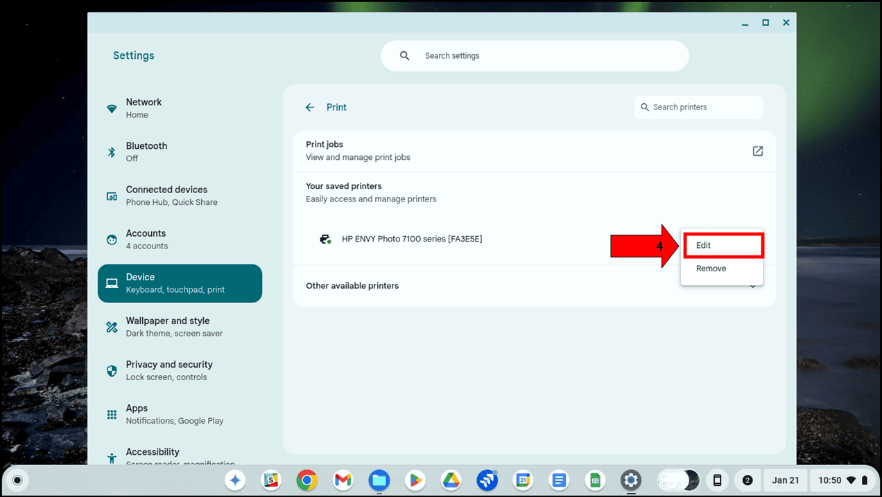 Steps 3 and 4: Choose Printers and Scanners from the lefthand menu, then click on your printer.
