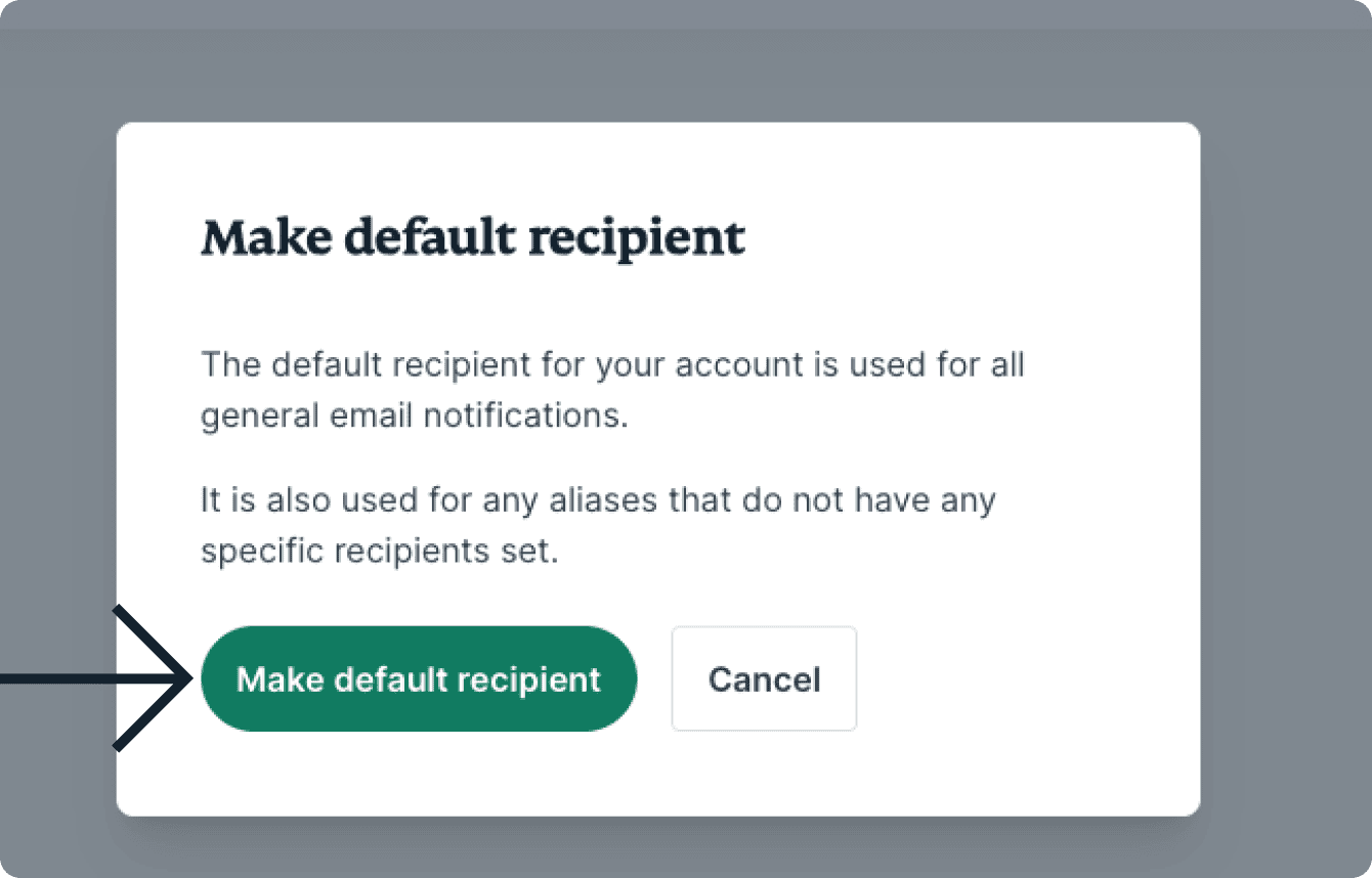 - Find the recipient you want to make your new default recipient and click Make Default.