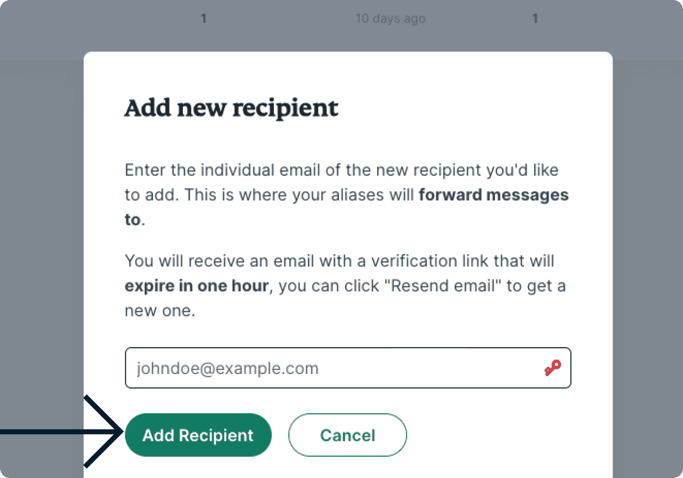 - Enter the email address of the recipient you want to add, then click Add Recipient.