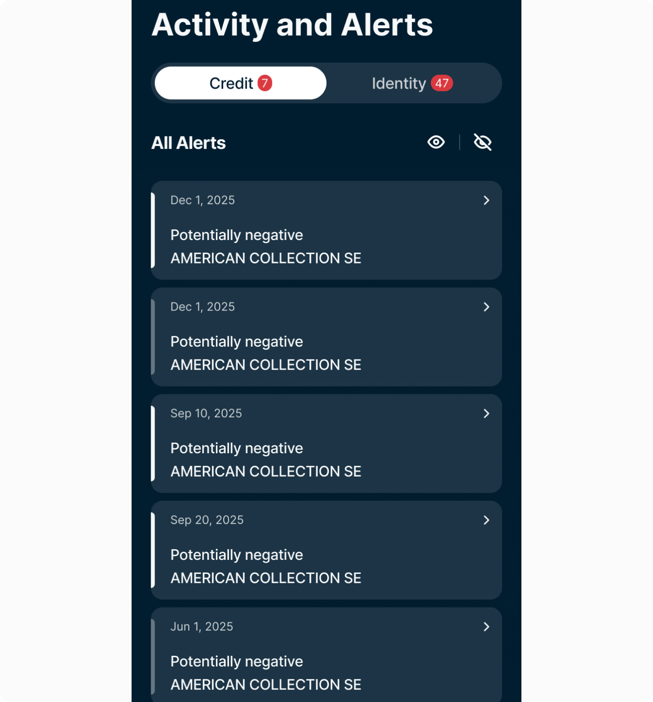 Identity Defender will send you real-time notifications whenever suspicious activity is detected, ensuring you can act quickly before harm is done. Depending on your plan, you will receive alerts for: