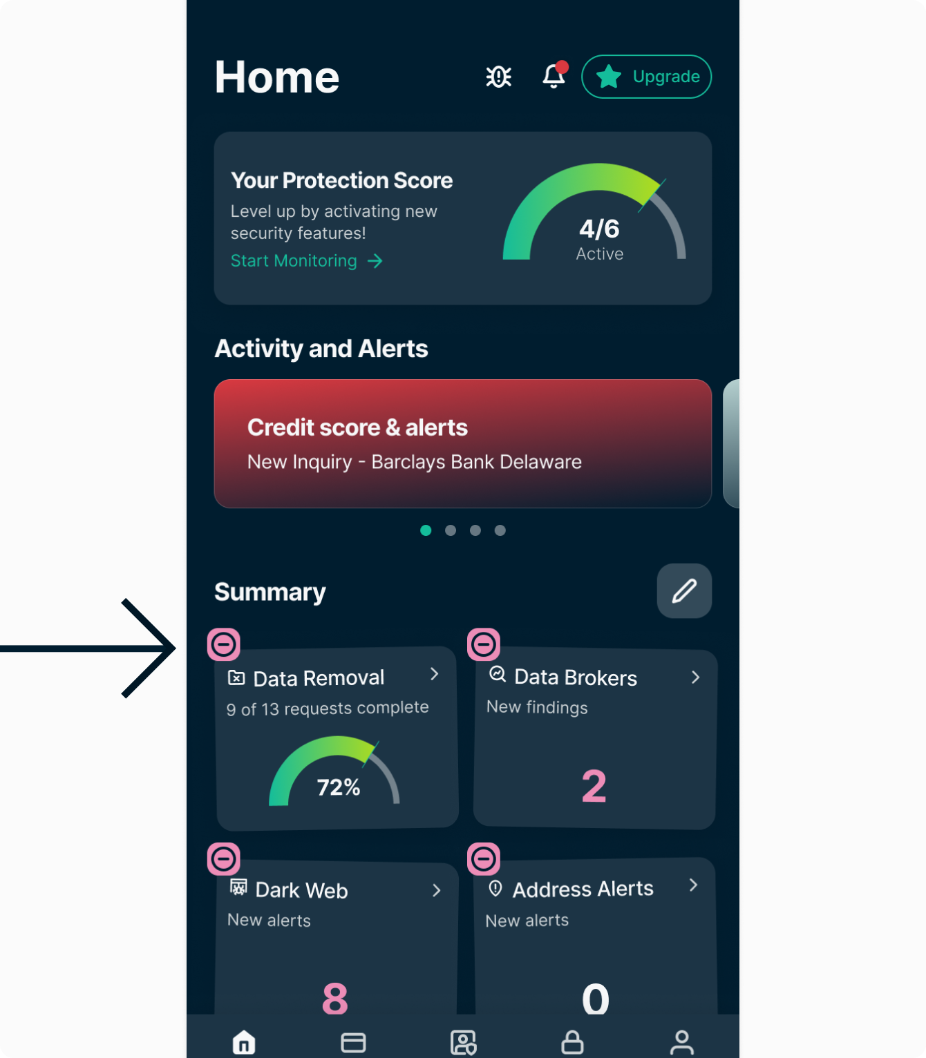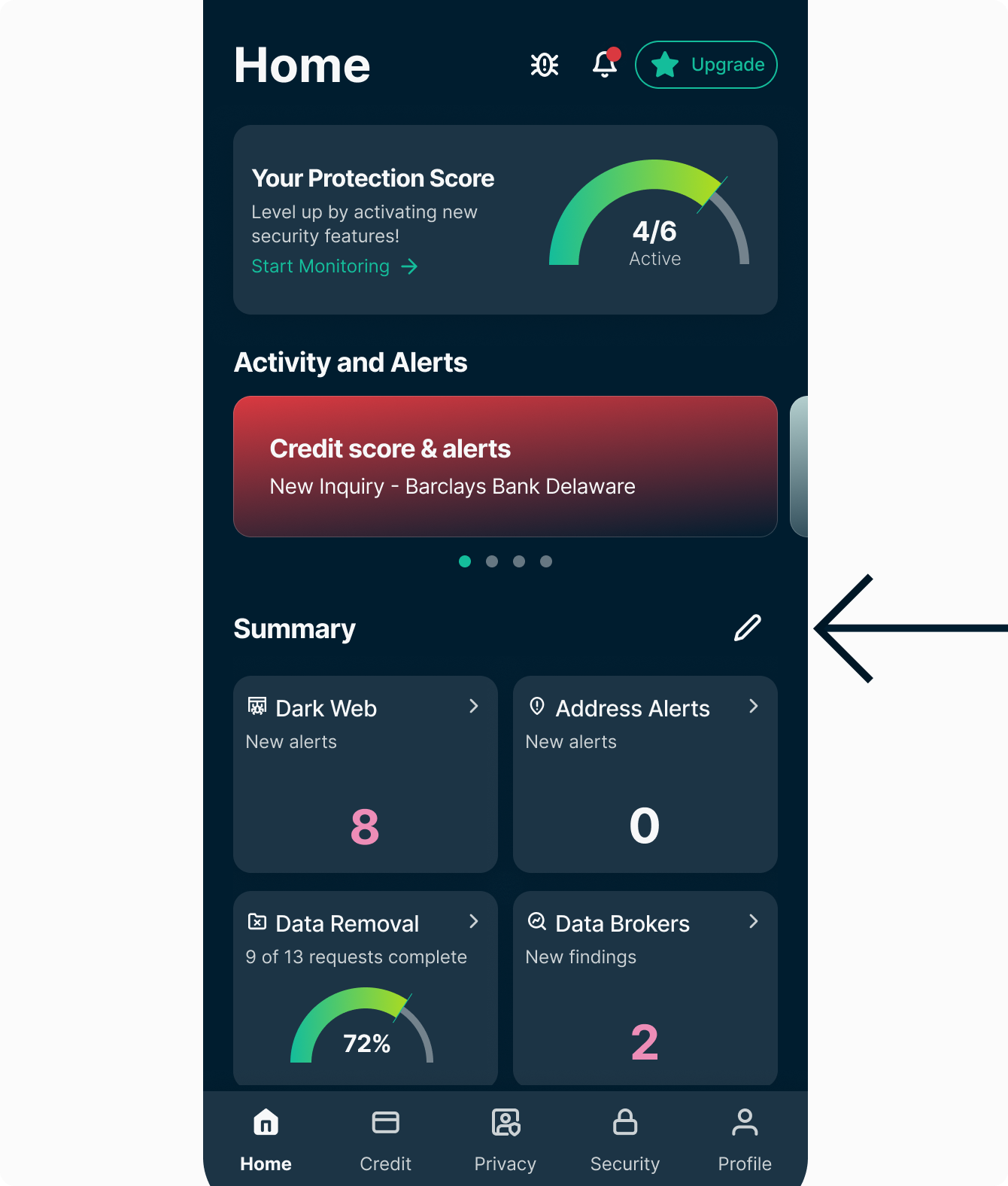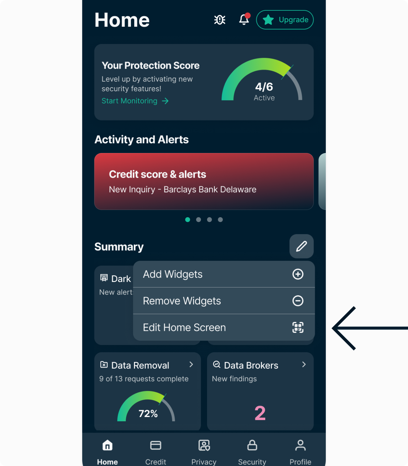 You can personalize the Home tab of the Identity Defender app for Android and iOS by reorganizing your dashboard widgets to suit your preferences.