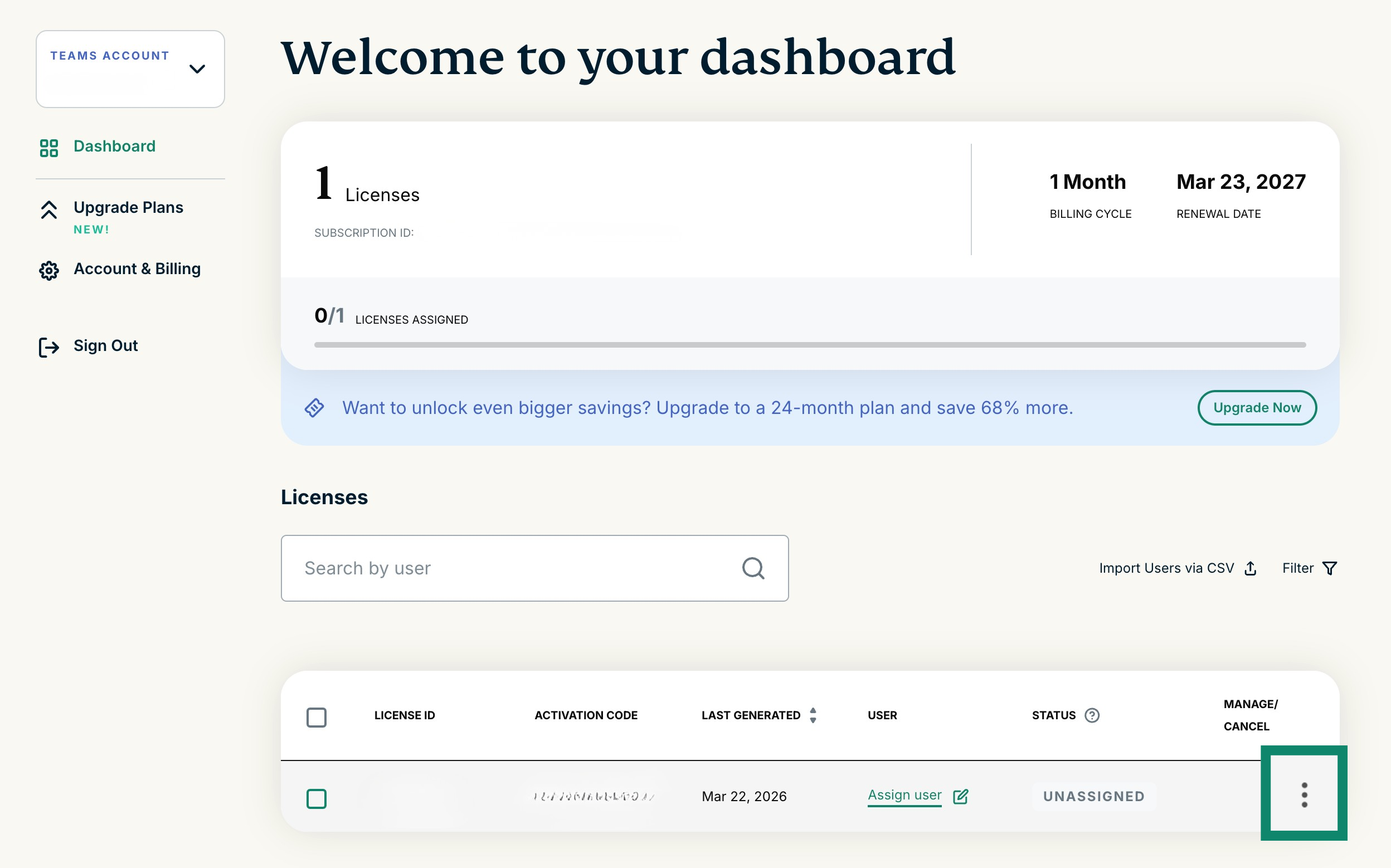 - If successful, you will see a message at the top of your Admin Account Dashboard stating “You have successfully turned off auto-renewal for your selected licenses below. Your license/s will expire on XX.”