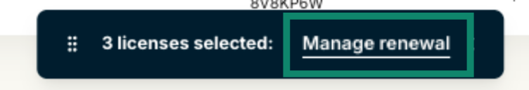 - You will see a black box pop up stating the number of licenses you have selected. Select Manage renewal.