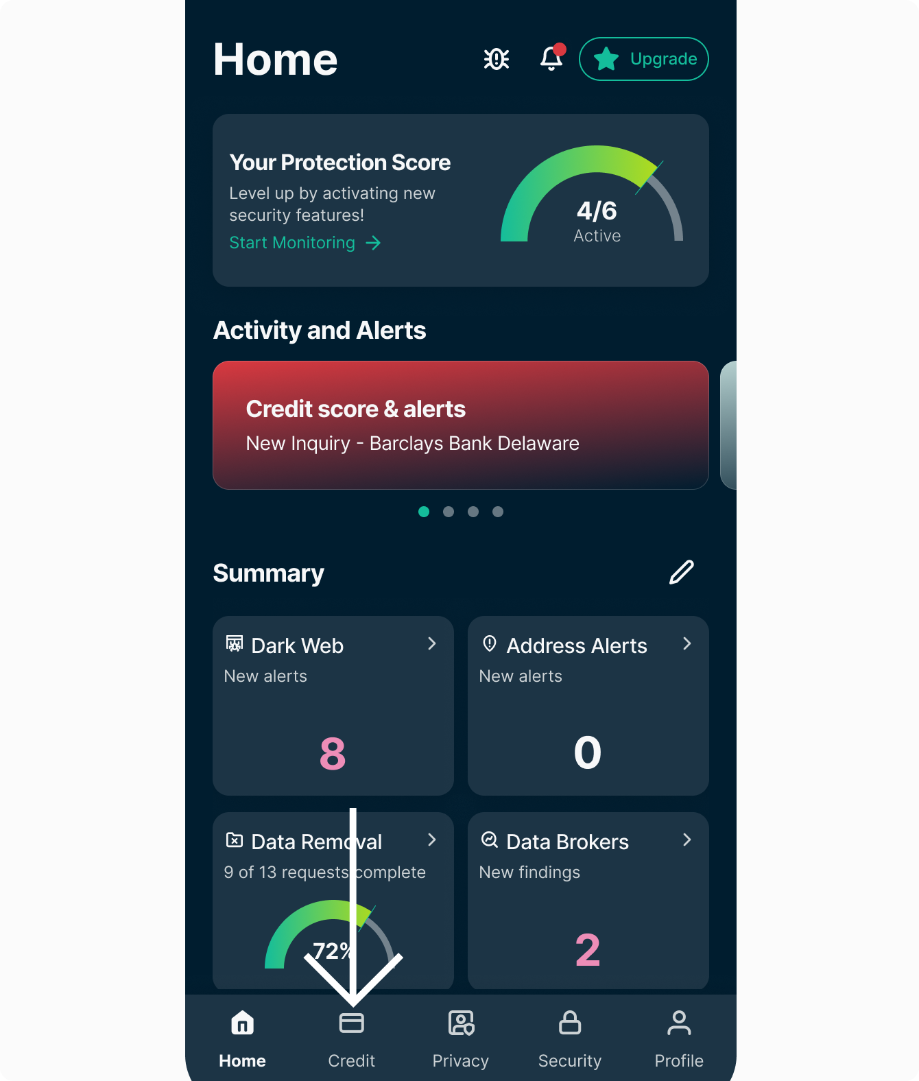 - Tap the Credit tab.