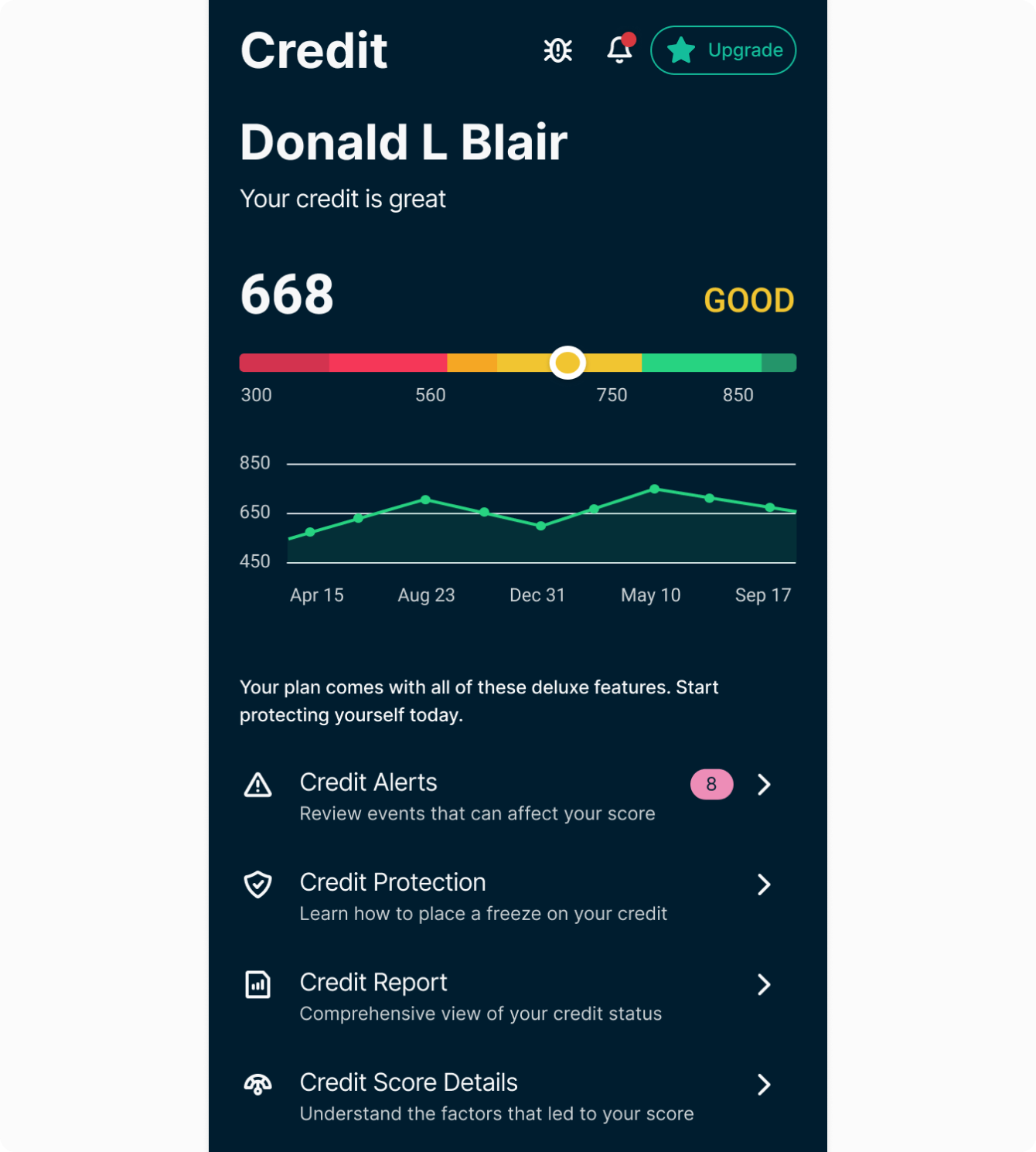 - Once verified, you will be taken to a dashboard with your credit score and other features.