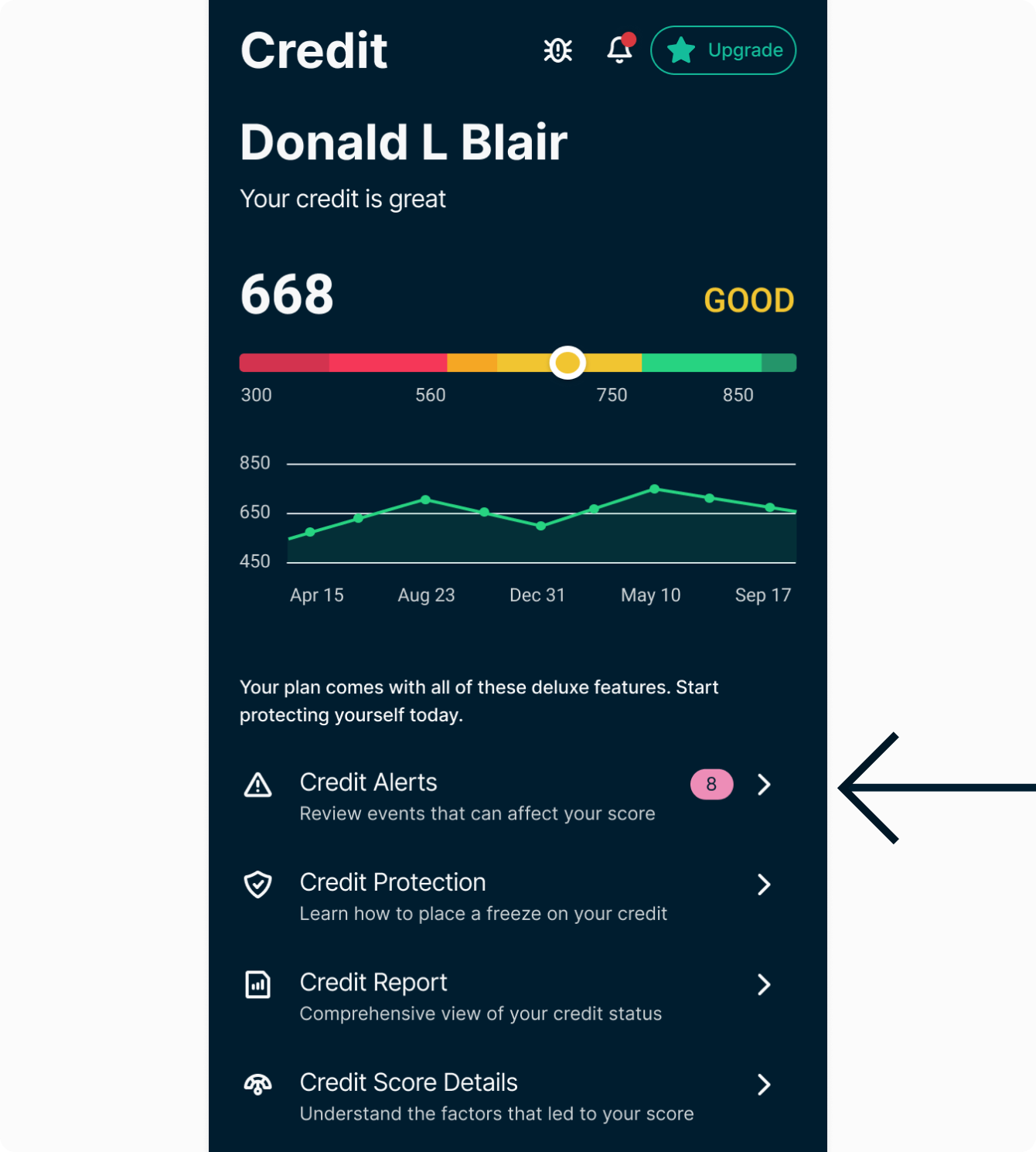 Credit Alerts enable you to view events that could impact your credit. Selecting the plus sign on each item provides more information on each event and why it might affect your score. To view your credit alerts: