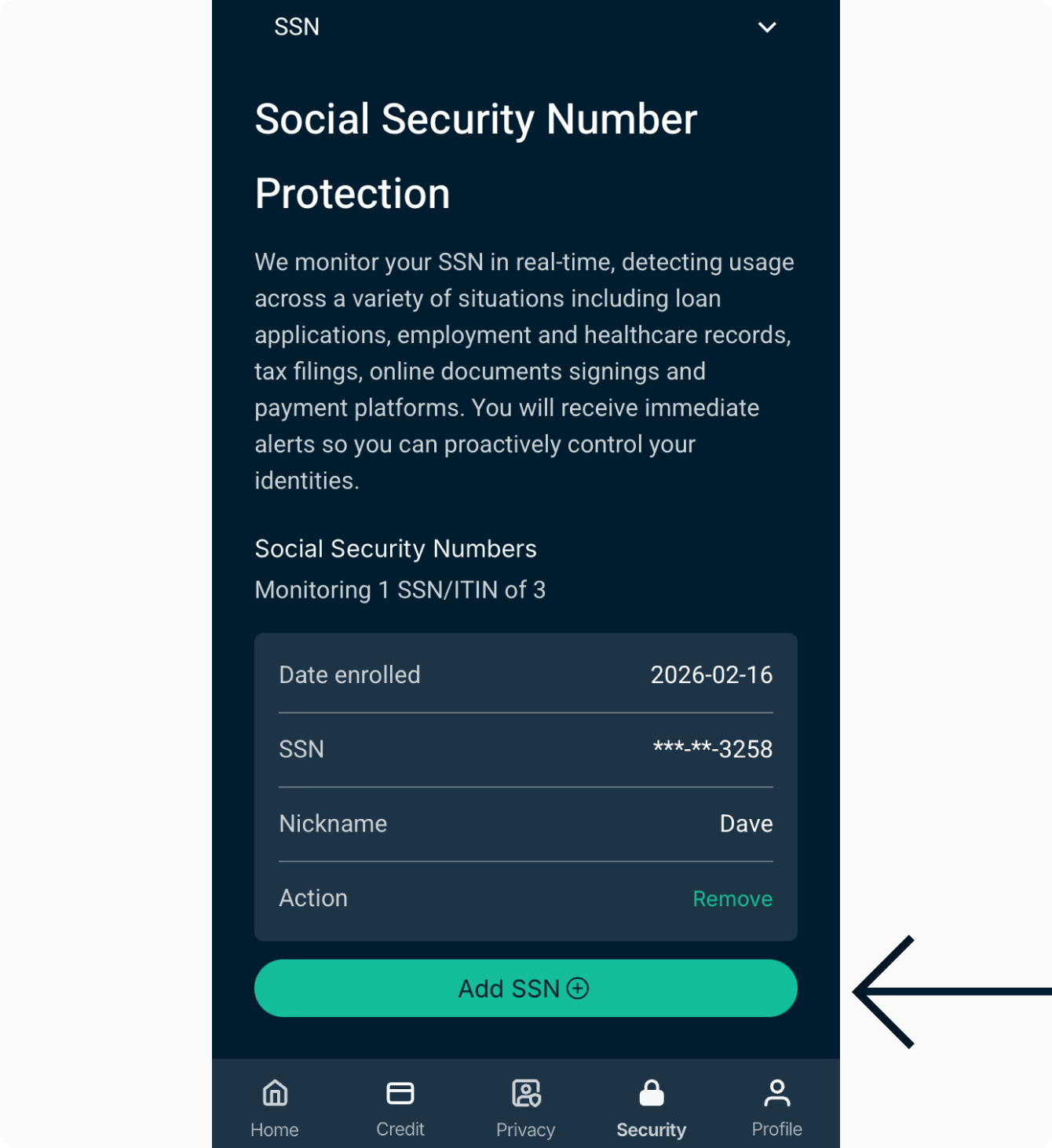 Note on activation: To use this service, you must provide your first name, last name, date of birth, home address, and Social Security Number (SSN). If you provided your basic details during the initial setup, you will only be prompted to add your SSN and phone number. If you have already provided all this information, no further action is needed.