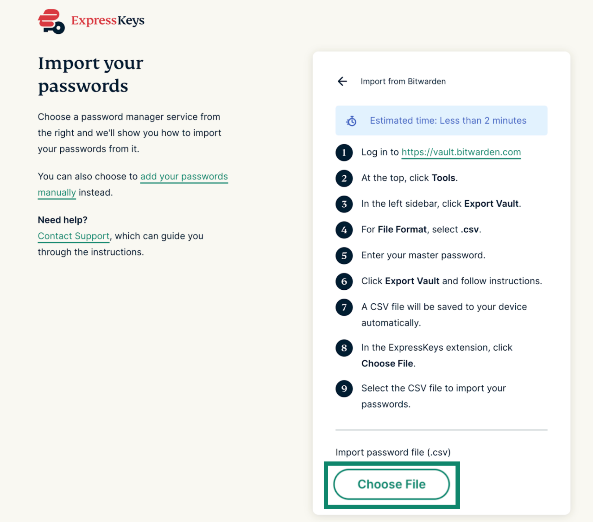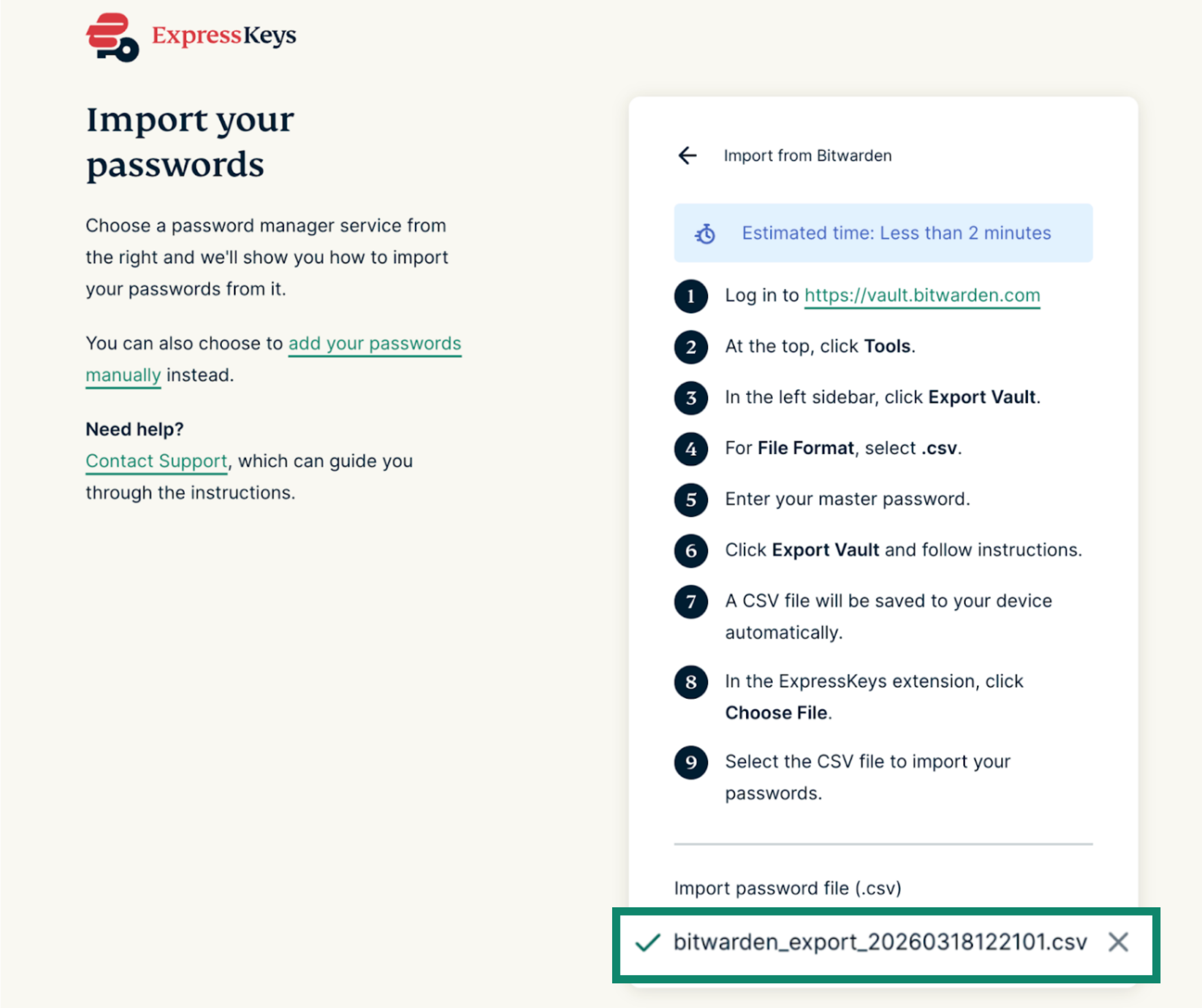 2. Import your Bitwarden data into ExpressKeys