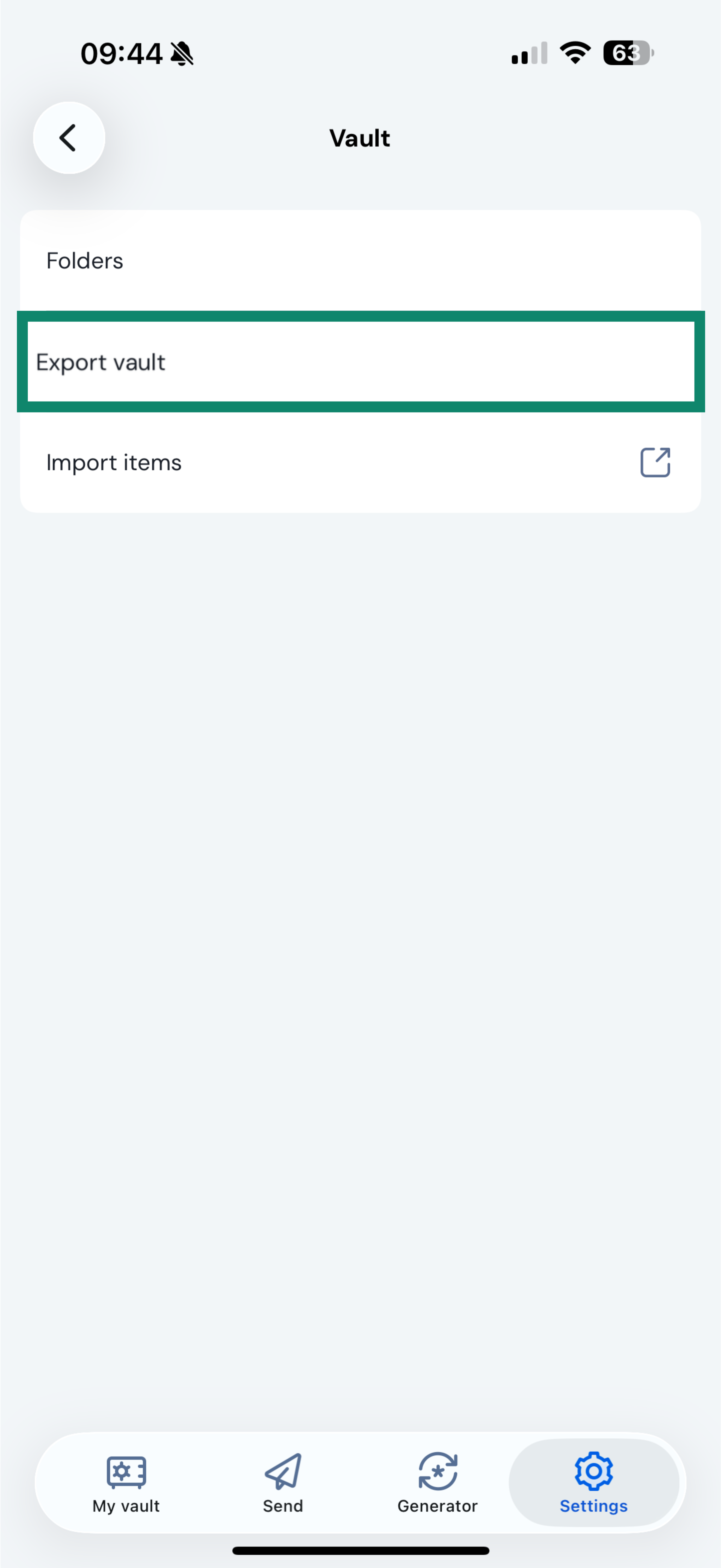 - Tap Export vault.
