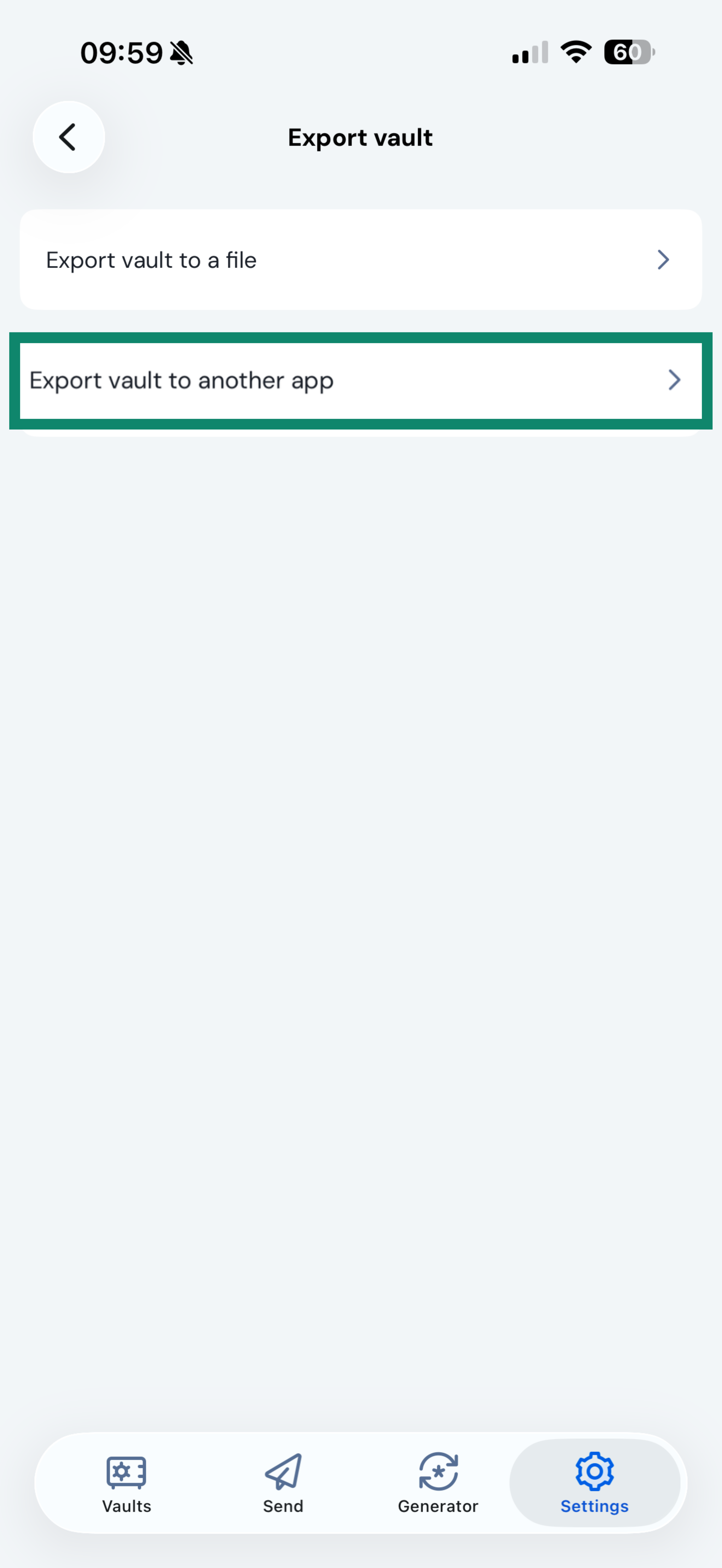 - Tap Export vault to another app.