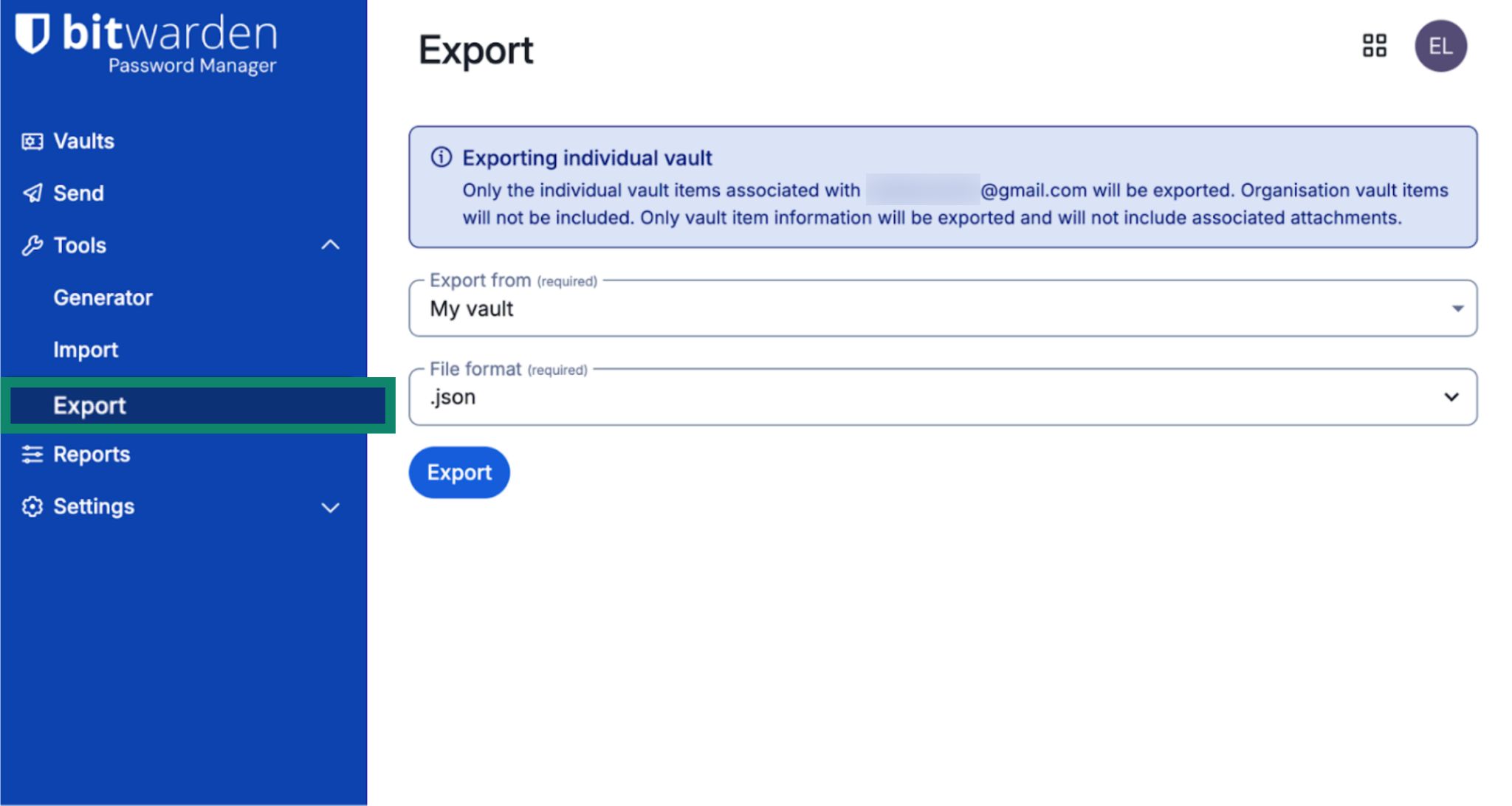 1. Export your Bitwarden data