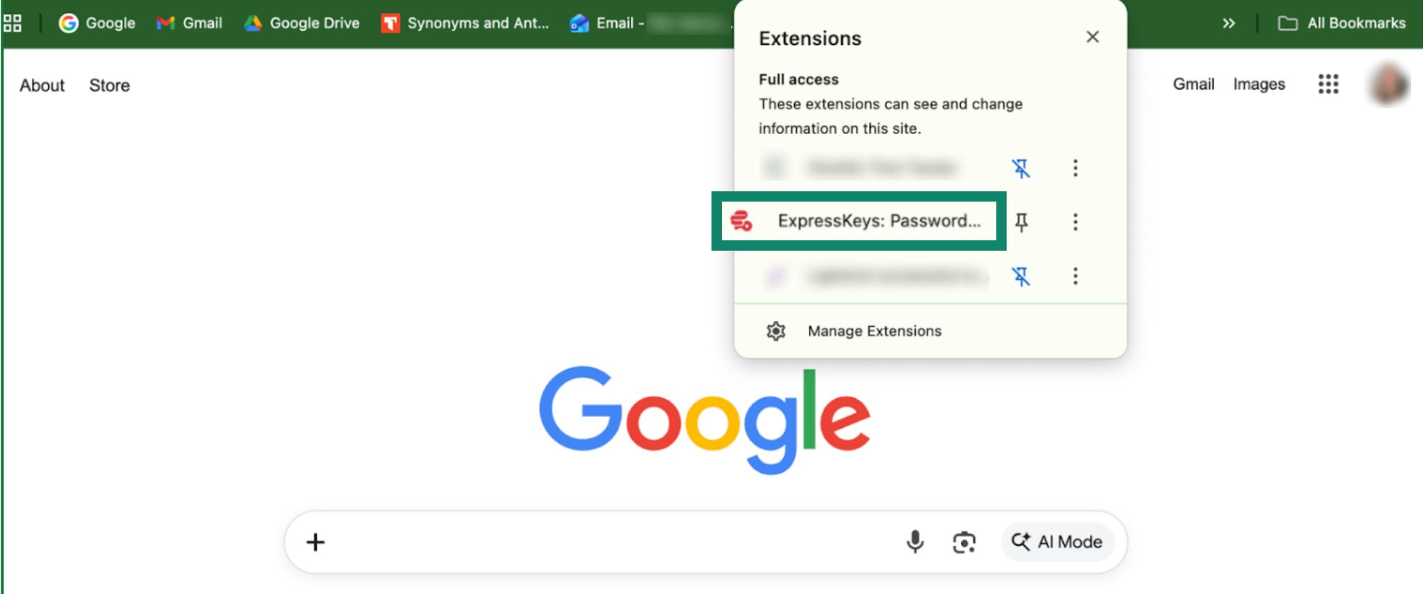 - In the toolbar, open Extensions (jigsaw icon) and click ExpressKeys.